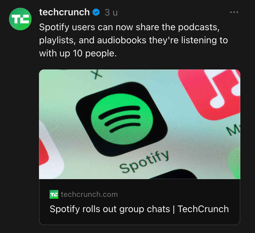 Het delen van posts, muziek en video’s op Spotify, LinkedIn en YouTube is namelijk geen onderdeel van het DNA van die platformen.