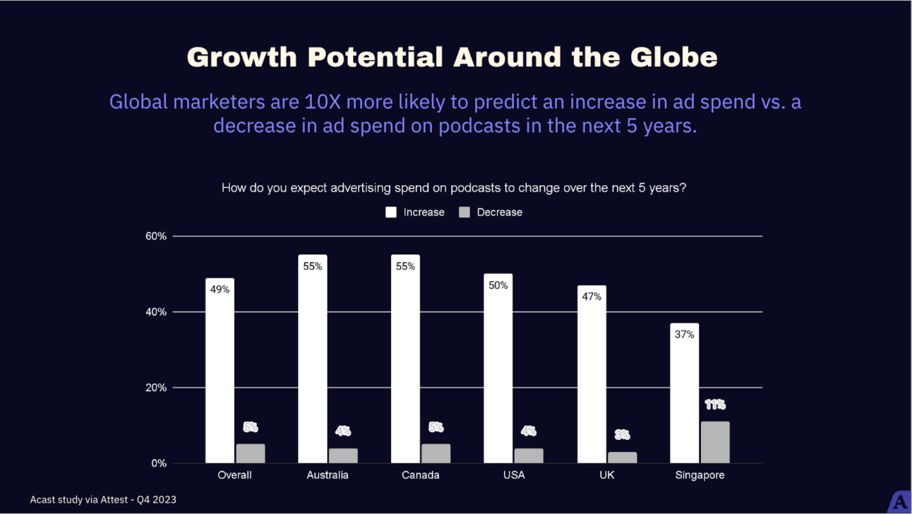 Uit nieuw onderzoek van Acast blijkt dat marketeers de komende jaren van plan zijn veel meer te gaan investeren in podcastadvertenties.